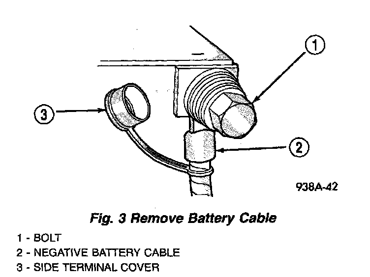 1. Disconnect battery negative cable (Fig. 3).