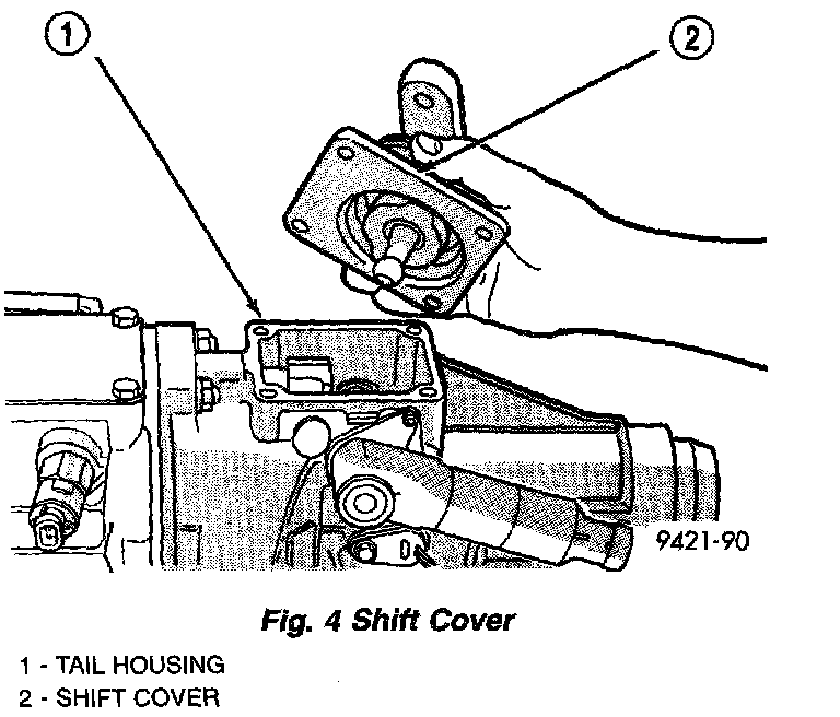 DISASSEMBLY1. Remove four shift cover bolts and remove shift cover (Fig. 4).
