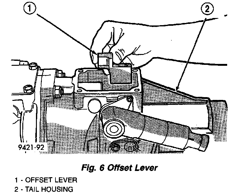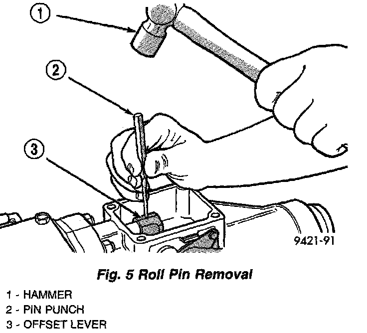 2. Remove roll pin from rear offset lever (Fig. 5).