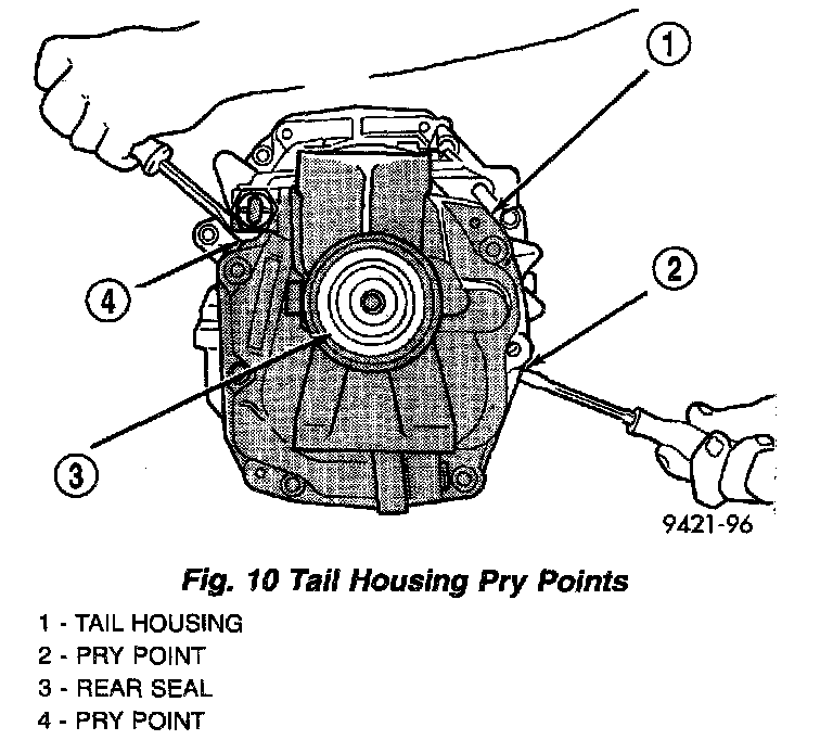 7. Gently pry tail housing off (Fig. 10) and pull tail housing off case.
