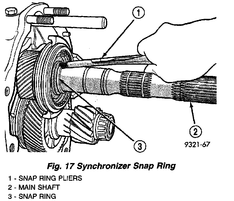 14. Remove synchronizer sleeve snap ring (Fig. 17).