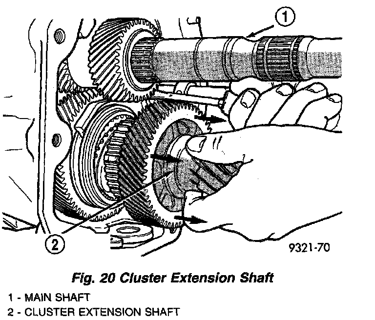 17. While holding 5-6 shift fork in place, pull cluster extension shaft straight out (Fig. 20).