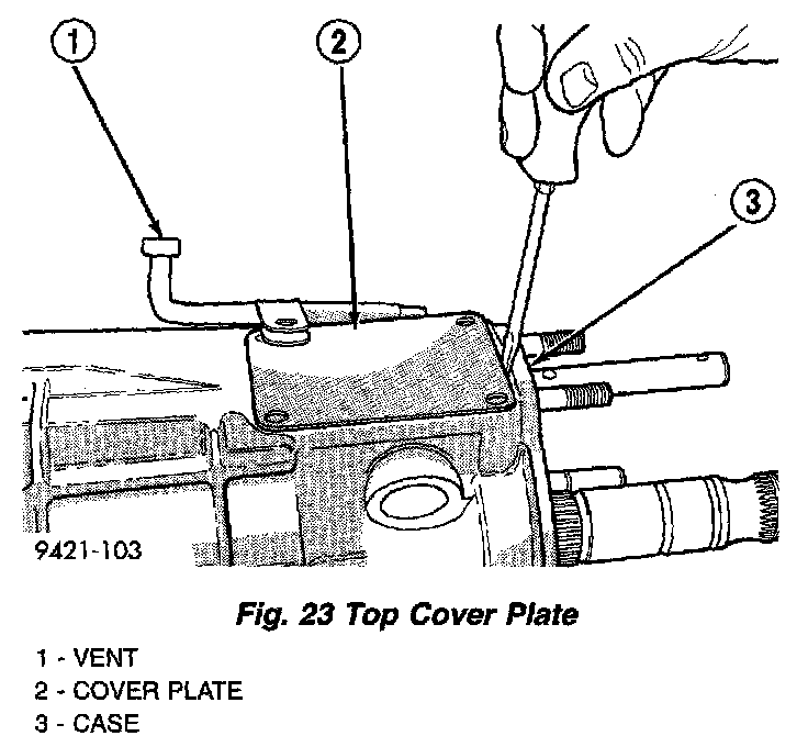 20. Remove top cover plate bolts and pry off cover (Fig. 23).