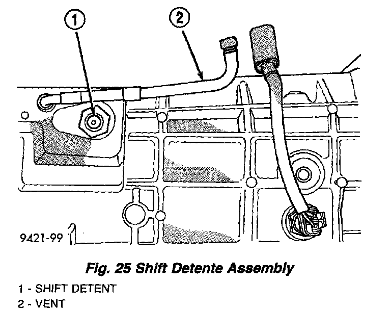 22. Remove shift detent assembly (Fig. 25). Check O-ring, replace if required.