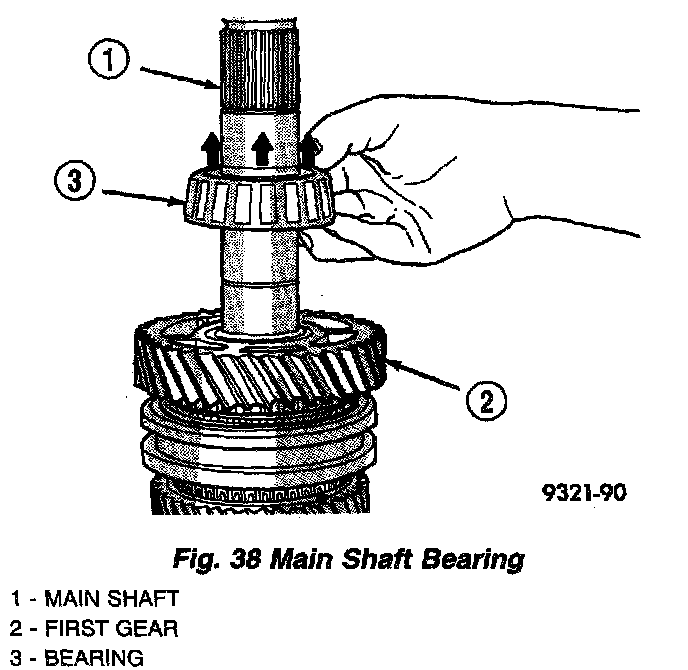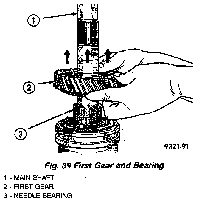 3. Remove first gear and bearing from shaft (Fig. 39).