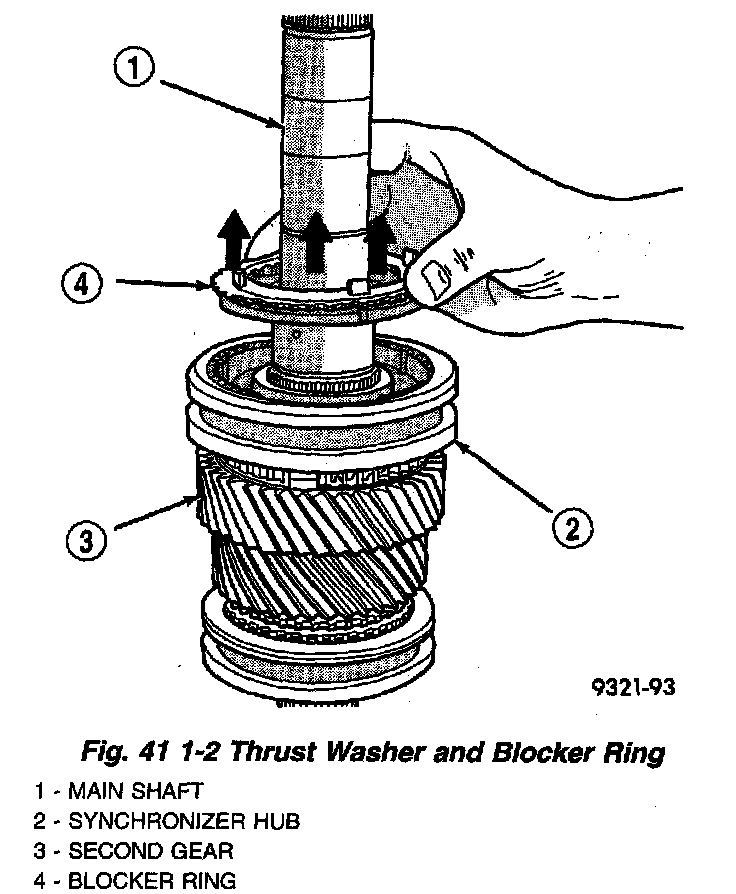 5. Remove 1-2 thrust washer and blocker ring assembly from main shaft (Fig. 41).
