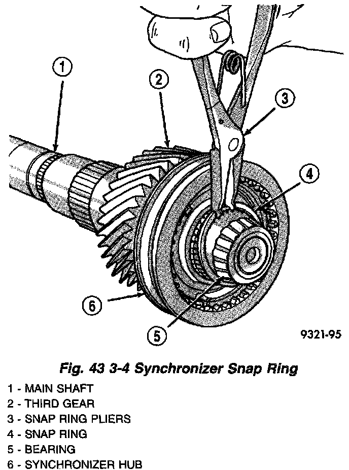 7. Remove 3-4 synchronizer snap ring (Fig. 43).