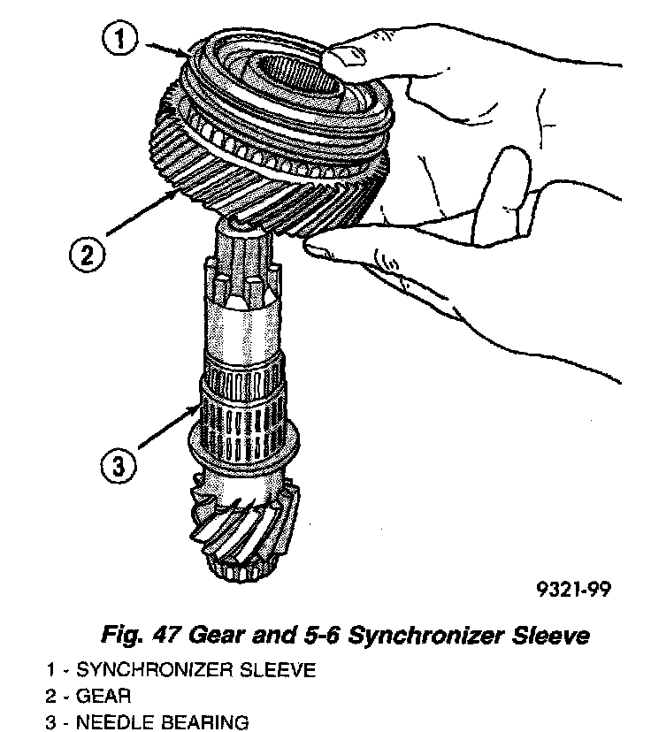 3. Remove gear and 5-6 synchronizer sleeve (Fig. 47).