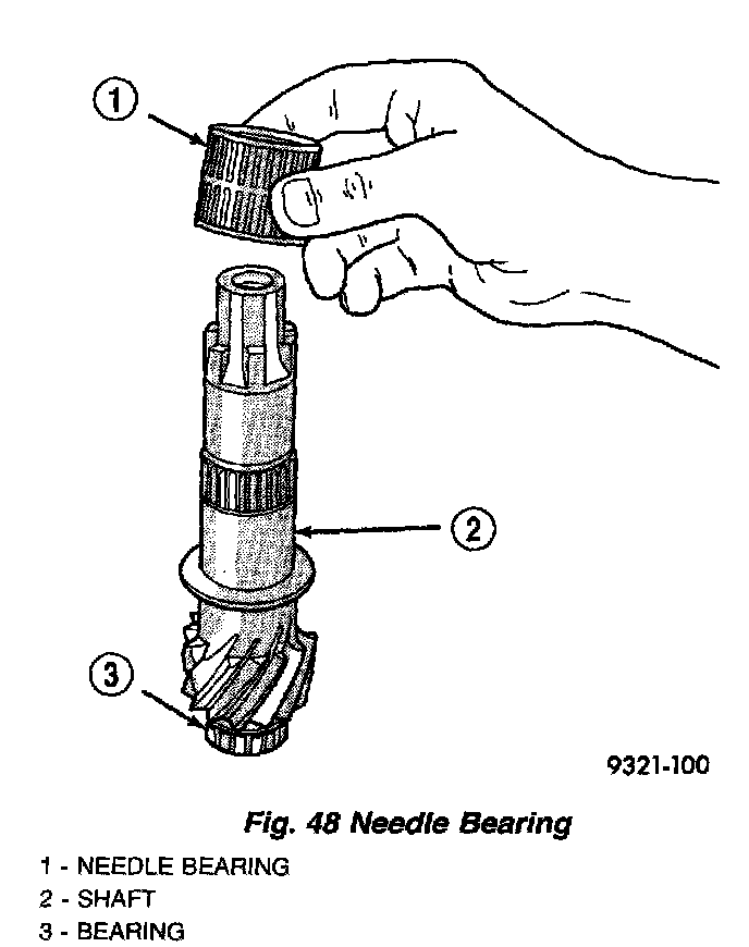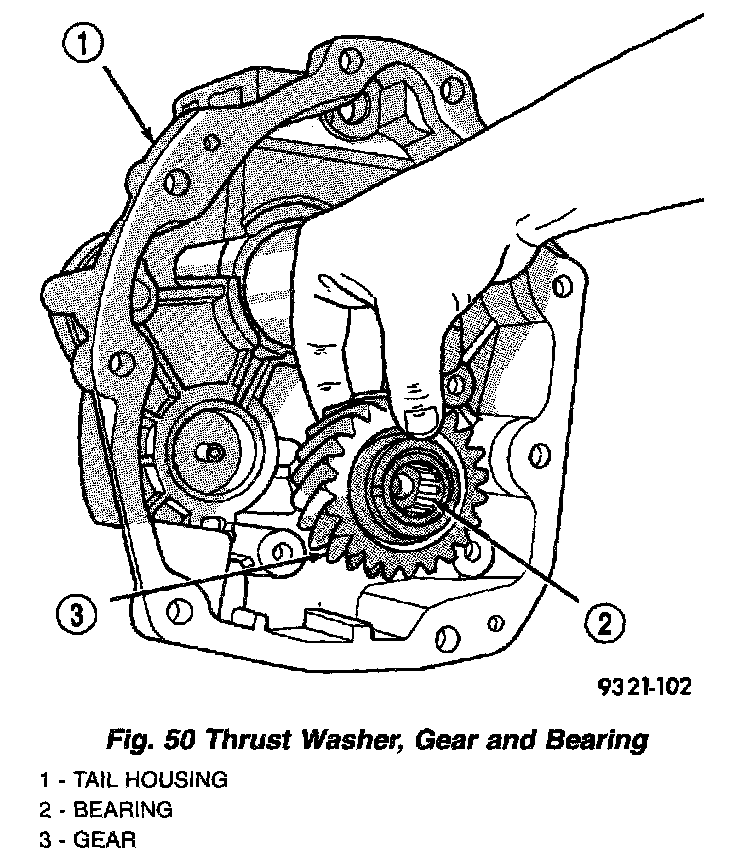 2. Remove thrust washer, gear and bearing (Fig. 50).