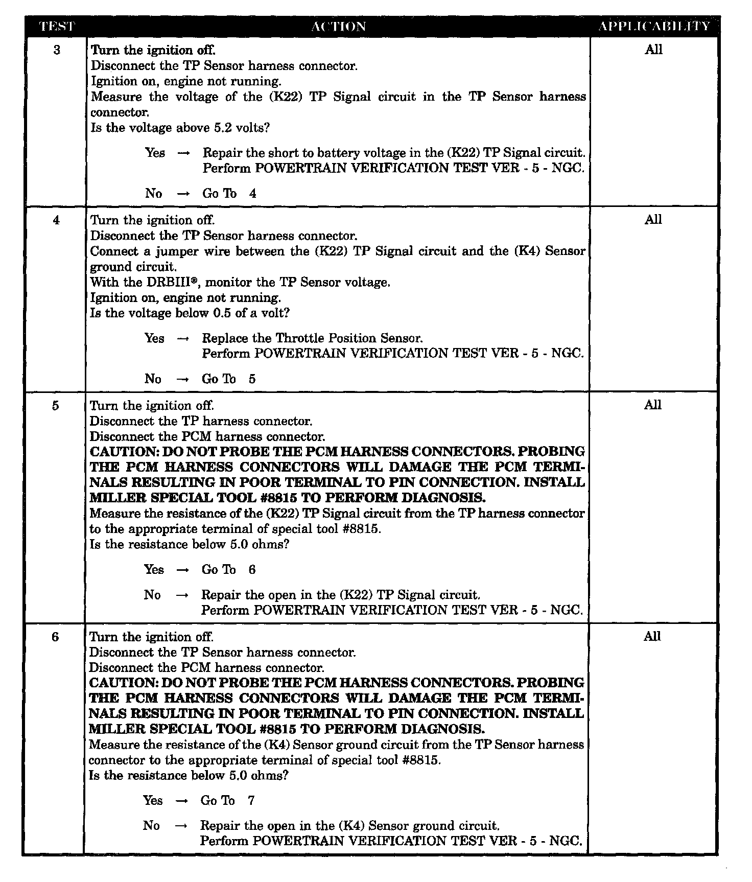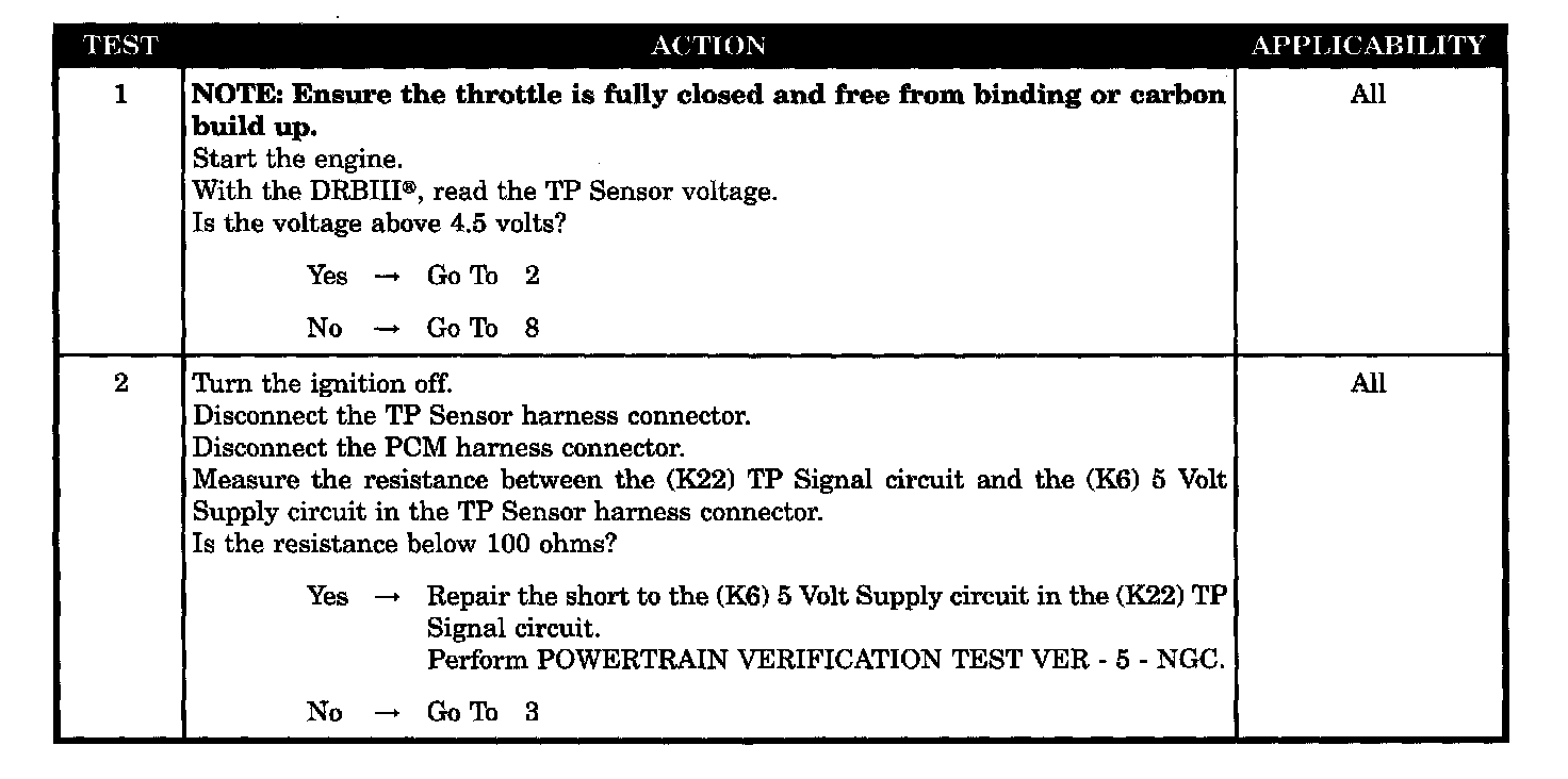 - (K22) TP signal circuit shorted to (K6) 5 volt supply circuit