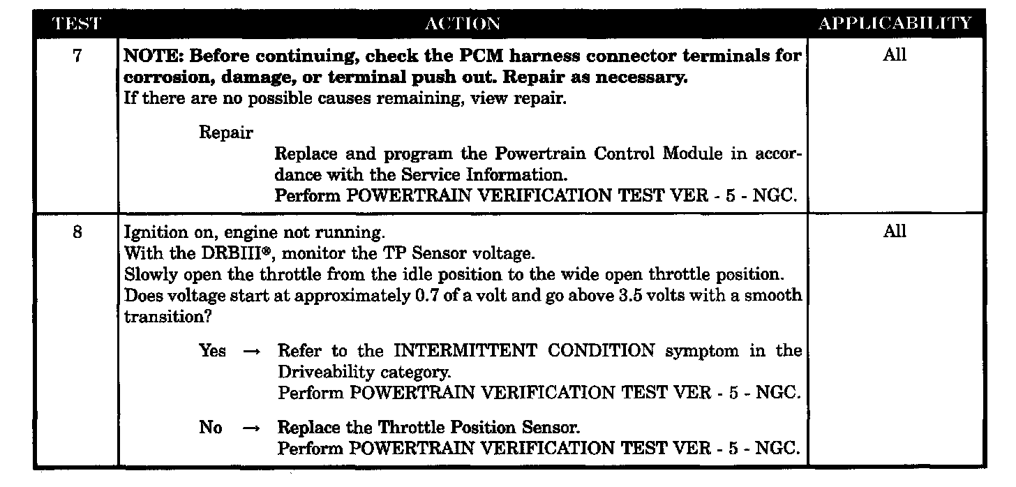 - Throttle position sensor sweep