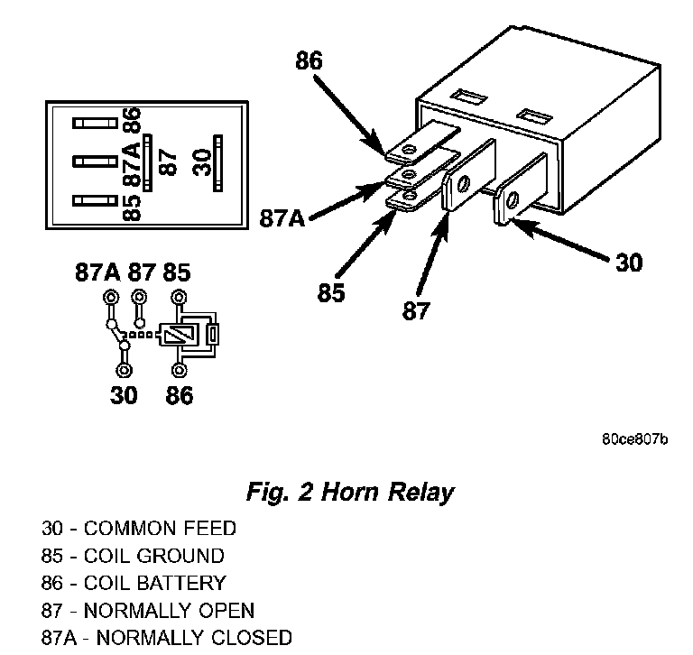 a. Terminals 30 and 86 of the horn relay to body ground.