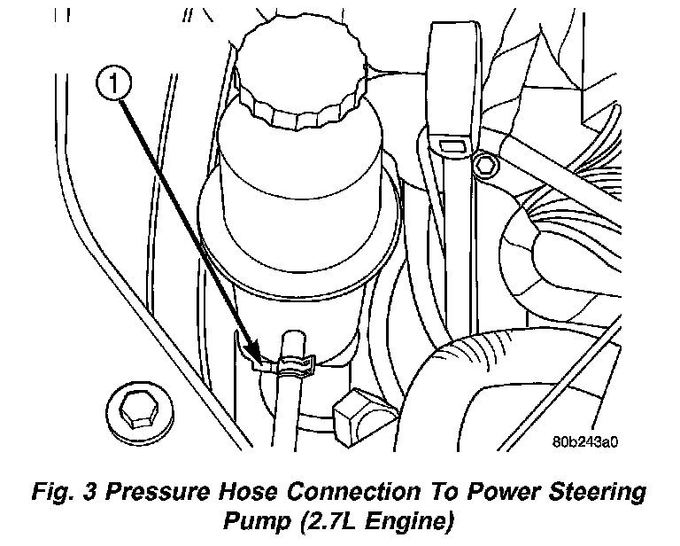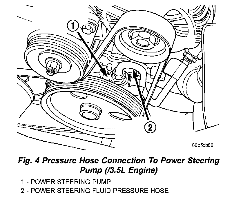 NOTE: On vehicles with 3.5 liter engines, it may be easier to access the power steering pump pressure fitting from the bottom of the vehicle engine compartment.