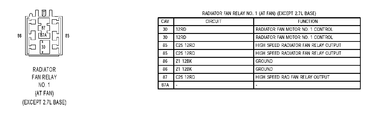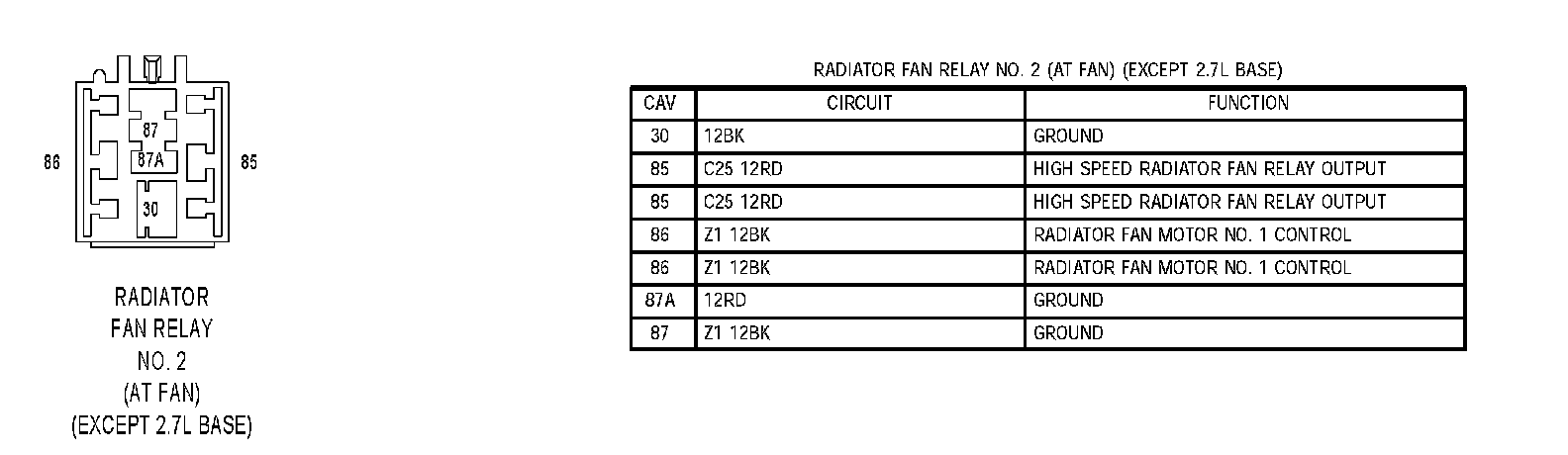 Radiator Fan Relay No. 1 (At Fan) (Except 2.7L Base):