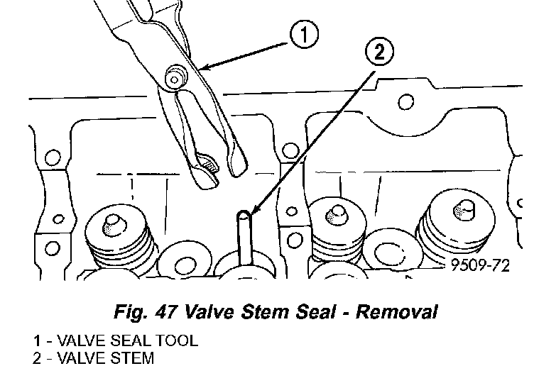 2. Remove valve stem seals by using a valve stem seal tool (Fig. 47).