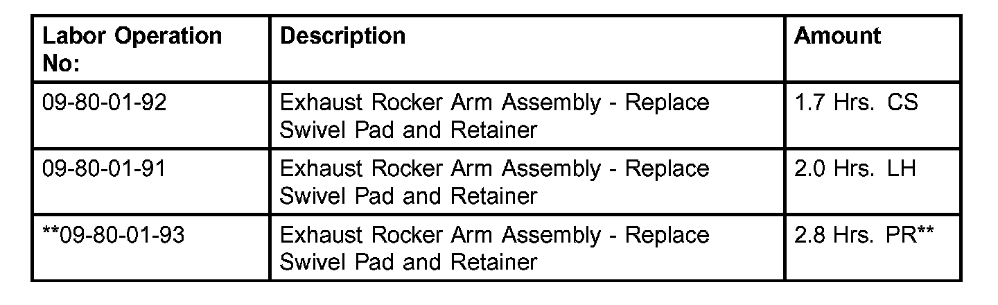 This bulletin involves replacing the swivel pads and swivel pad retainer on the exhaust rocker arms.