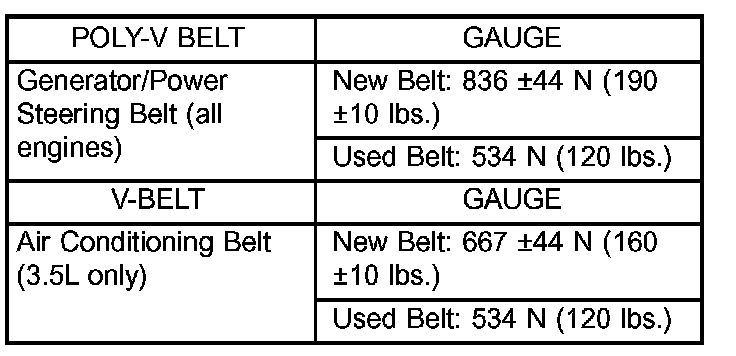 Use belt tension gauge, Special Tool 7198 for conventional V-belts and Poly-V belts.