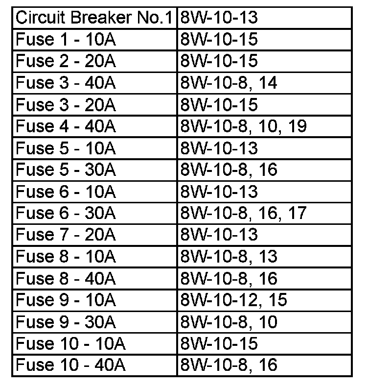 Power Distribution Center Circuit Breaker No.1 - Fuse 10:
