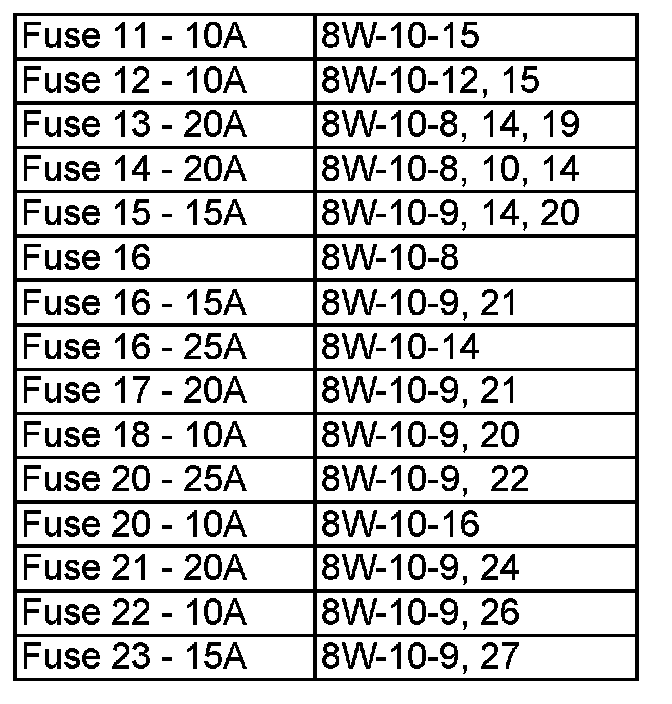 Power Distribution Center Fuse 11 - Fuse 23: