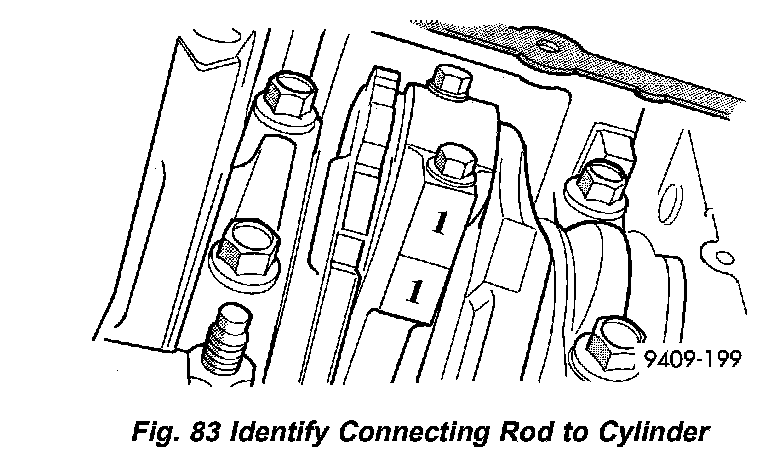 4. Using a permanent ink marker or scribe tool mark the cylinder number on the side of the rod and cap (Fig. 83) for identification.