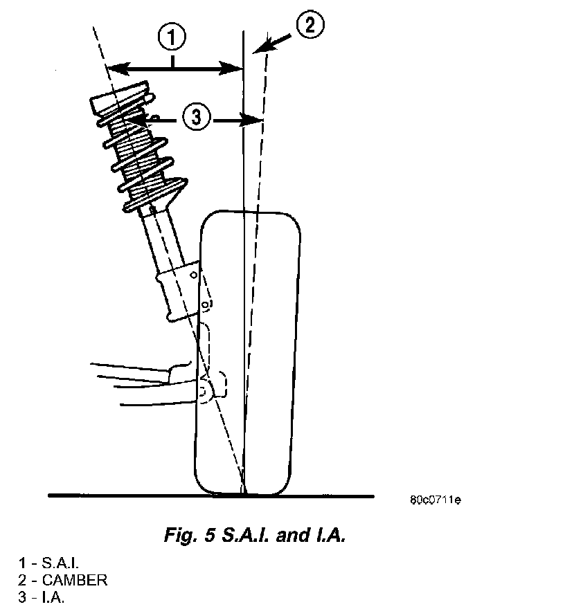Included angle is the sum of the S.A.I. angle plus or minus the camber angle, depending on whether or not the wheel has positive or negative camber. If camber is positive, add the camber angle to the S.A.I. angle. If camber is negative, subtract the camber angle from the S.A.I. angle. Included angle is not adjustable, but can be used to diagnose a frame misalignment or bent suspension component (spindle, strut).