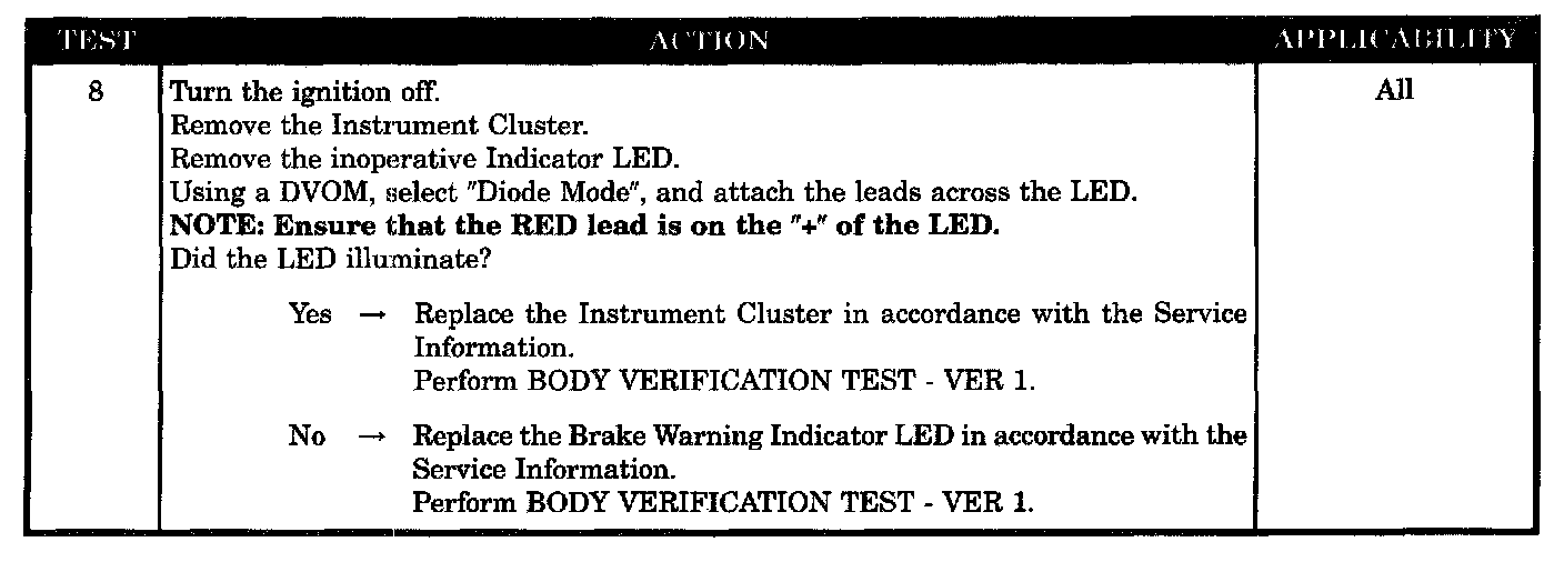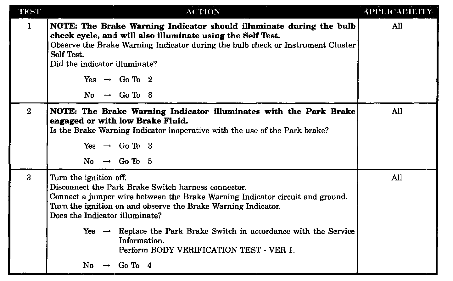 BRAKE WARNING INDICATOR INOPERATIVE