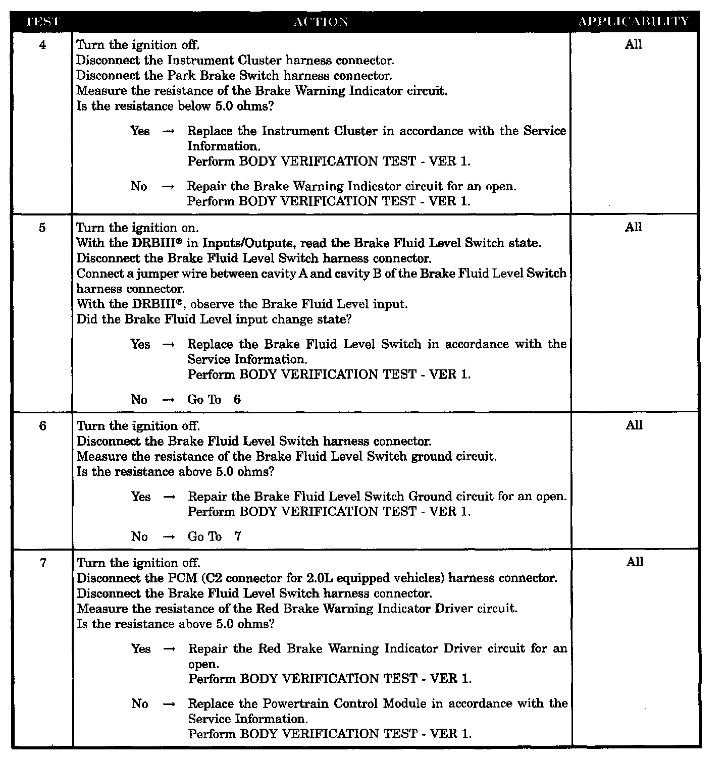 - Brake fluid level switch ground circuit open