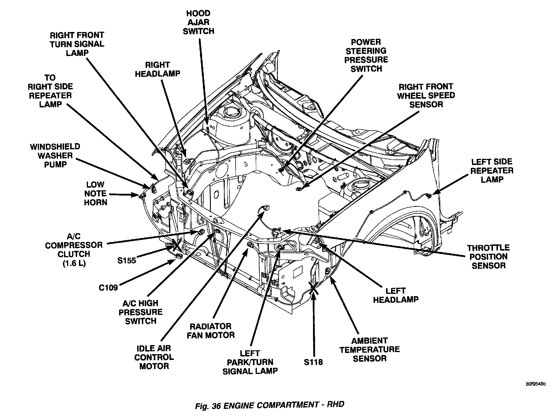 Fig. 36 Engine Compartment - RHD: