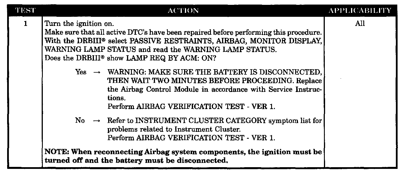 AIRBAG INDICATOR ON WITHOUT ACM TROUBLE CODES