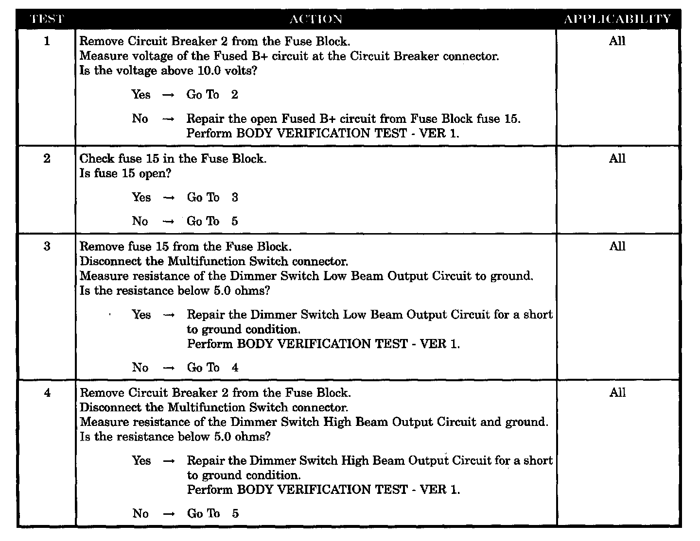 - Dimmer switch high beam output circuit short to ground