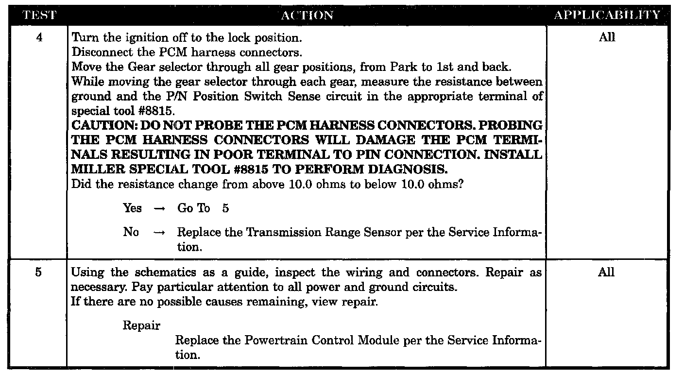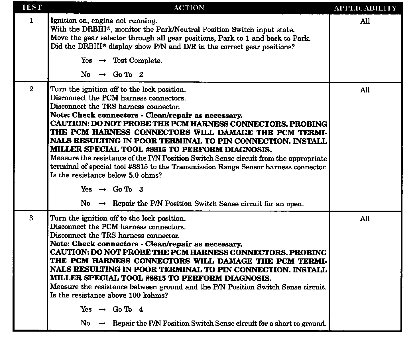 - P/N POSITION SWITCH SENSE CIRCUIT SHORT TO GROUND