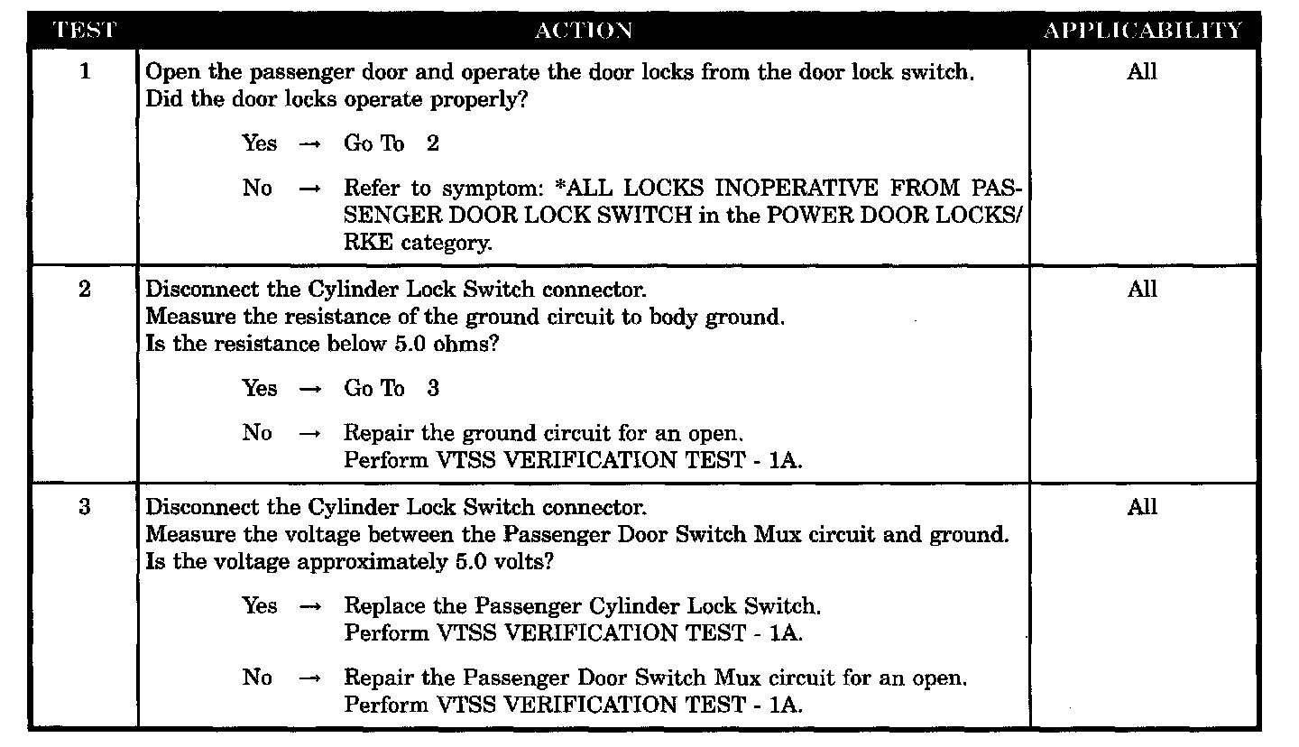 - Passenger cylinder lock switch faulty