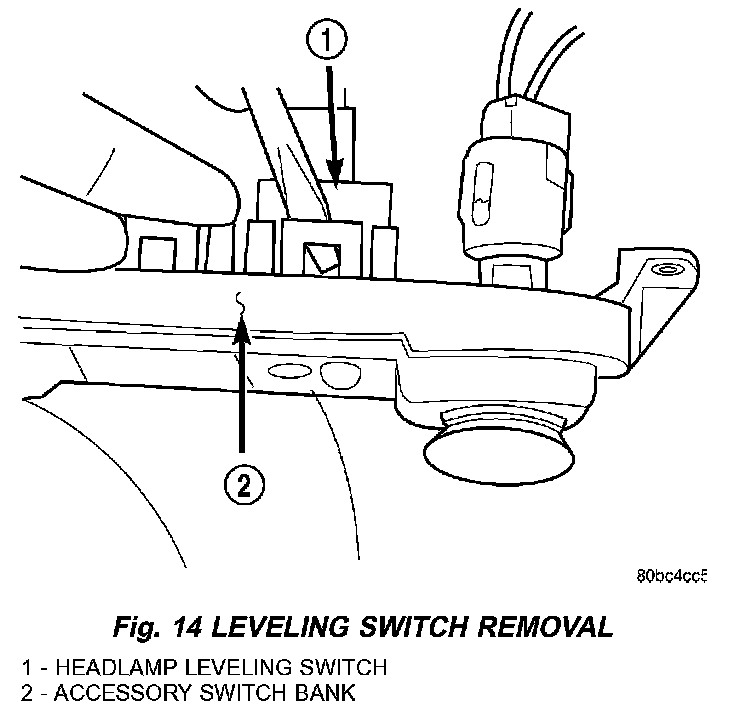 6. Pull the accessory switch bank out and disconnect the electrical connector from the headlamp leveling switch.