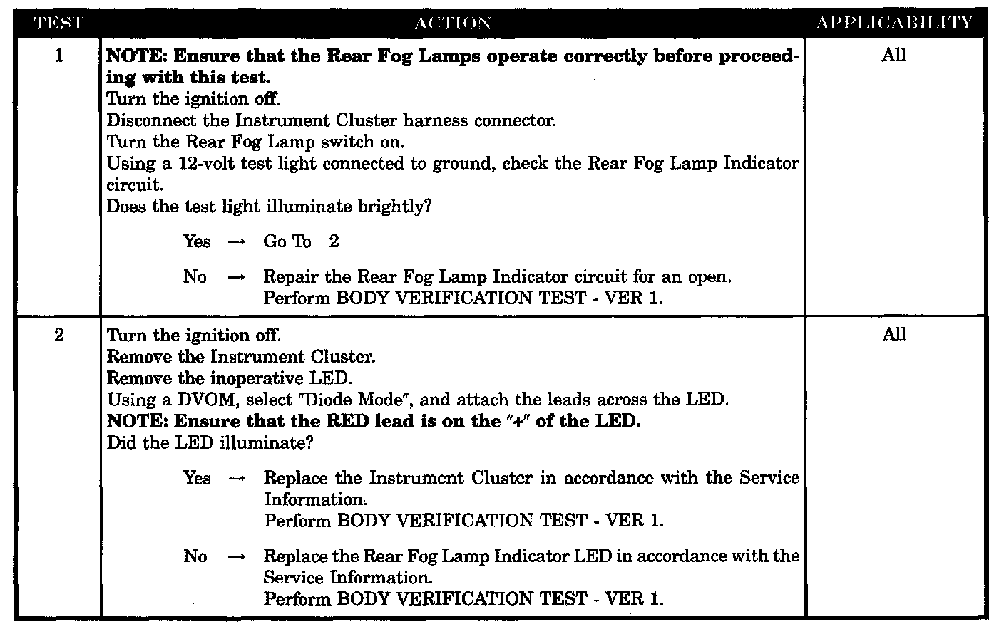 REAR FOG LAMP INDICATOR INOPERATIVE - BUX ONLY