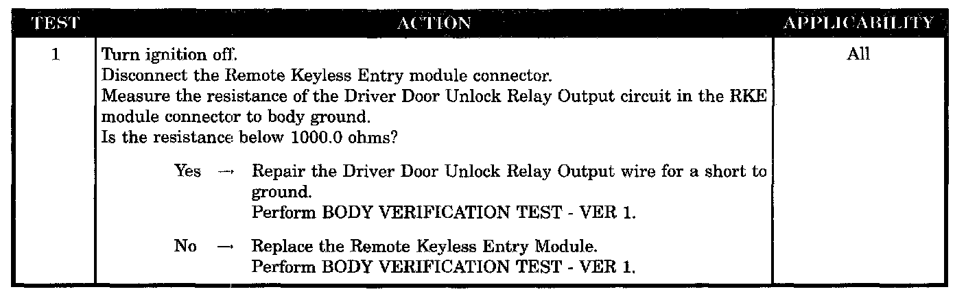 Driver door unlock relay output wire short to ground