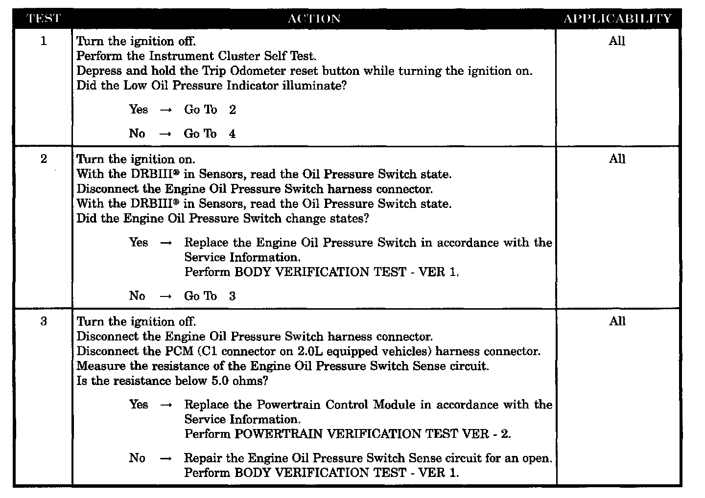 LOW OIL PRESSURE INDICATOR INOPERATIVE