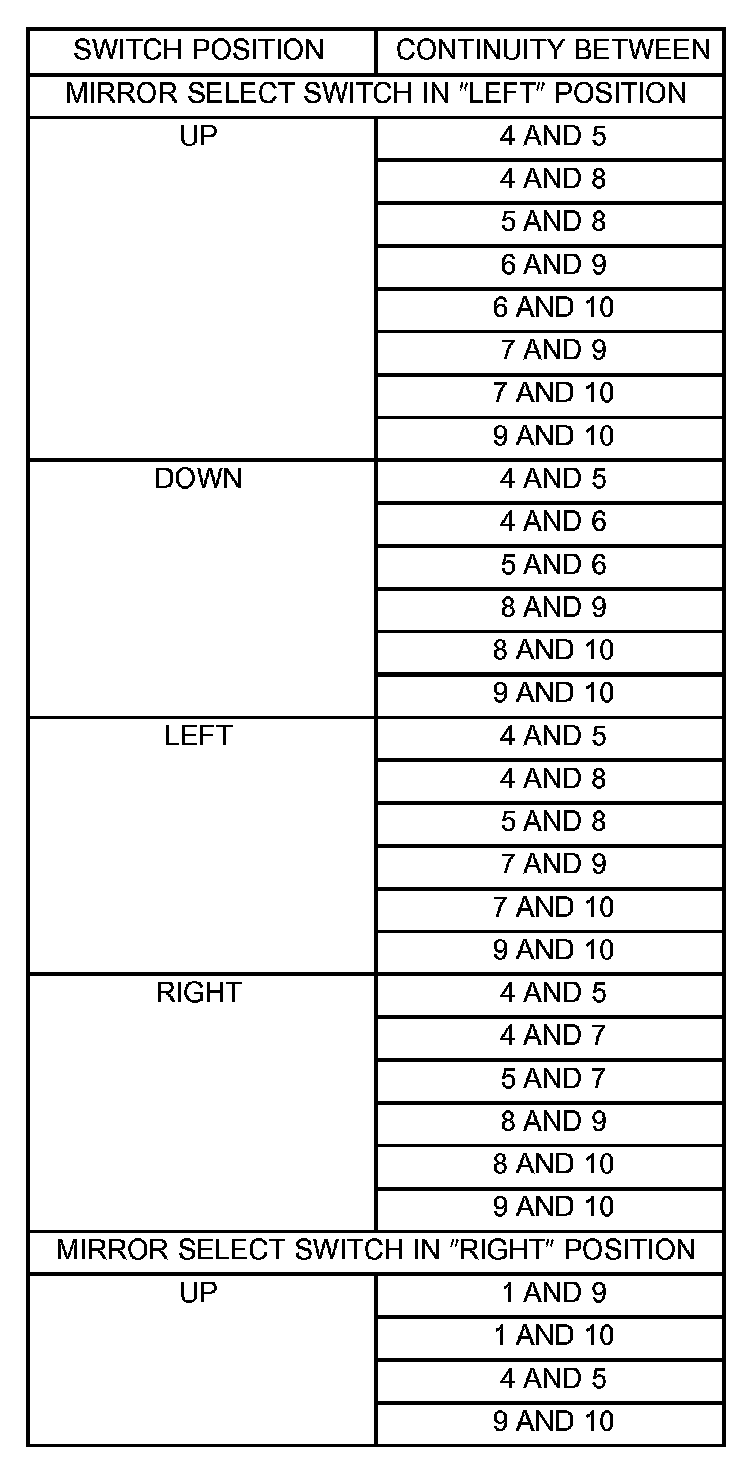 Power Mirror Switch Table ( Part 2 Of 2 ):