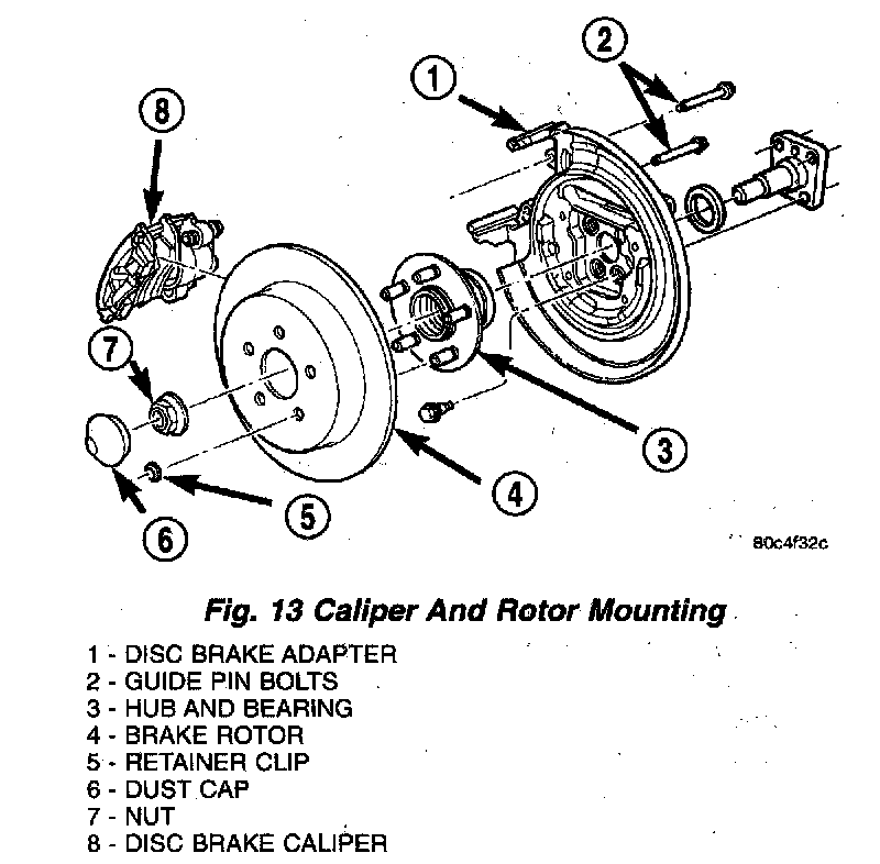 1. Completely retract the caliper piston back into piston bore of the caliper. This is required to gain the necessary shoe-to-rotor clearance for the caliper installation onto the steering knuckle.
