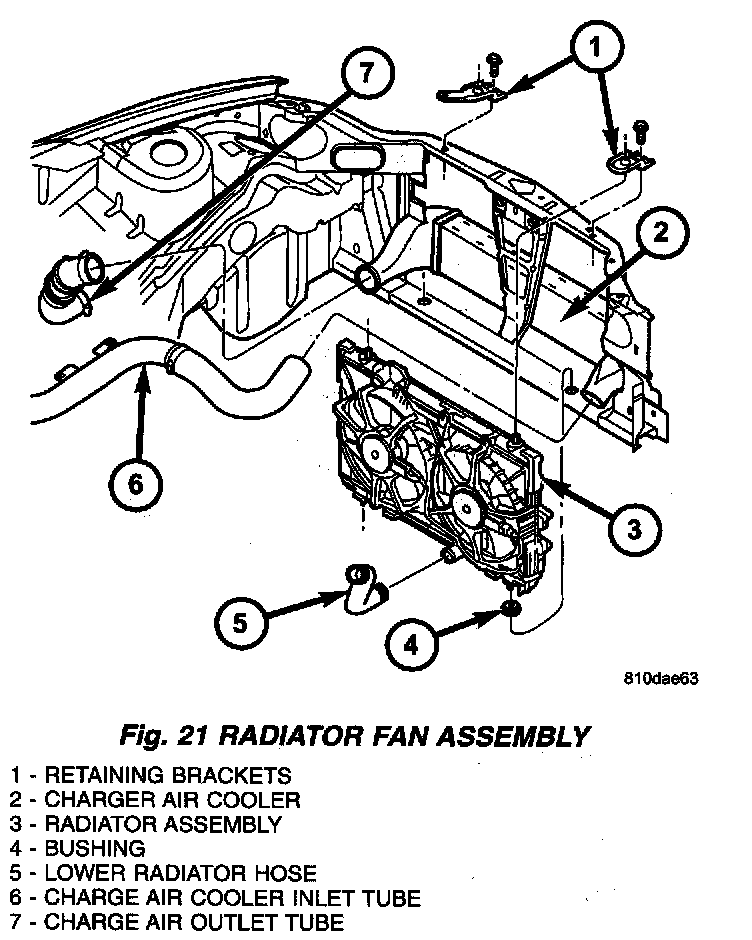 NOTE: It is not necessary to discharge the air conditioning system to remove the radiator.