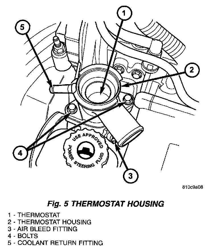 3. Attach a 6.35 mm (0.250 in.) inside diameter clear hose that is 120.0 cm (48 in.) long to the bleed valve. Route the hose away from the accessory drive belts and radiator fan. Position the other end of the hose into a collecting container. The hose will prevent coolant from contacting the accessory drive belts, A/C compressor, and other components.