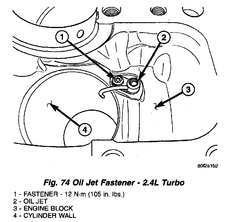CAUTION: Do not damage the oil jet assembly when removing piston/connecting rod (Fig. 74).