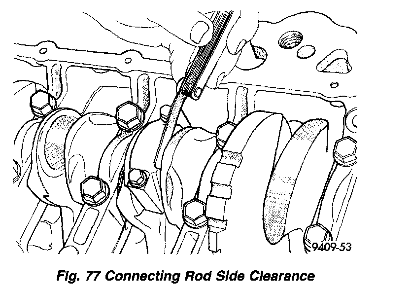 14). Using a feeler gauge, check connecting rod side clearance (Fig. 77).