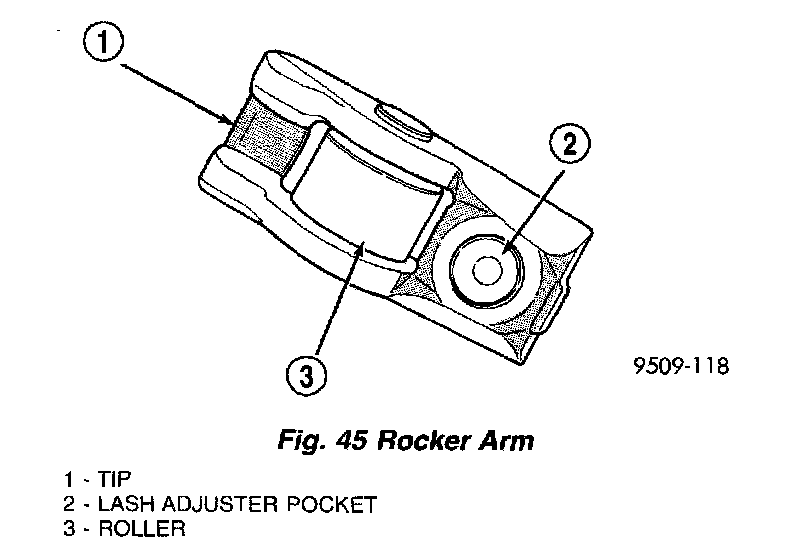 Inspect the rocker arm for wear or damage (Fig. 45). Replace as necessary.