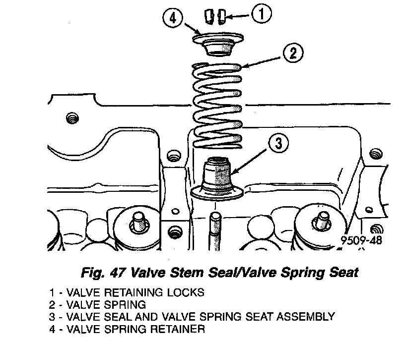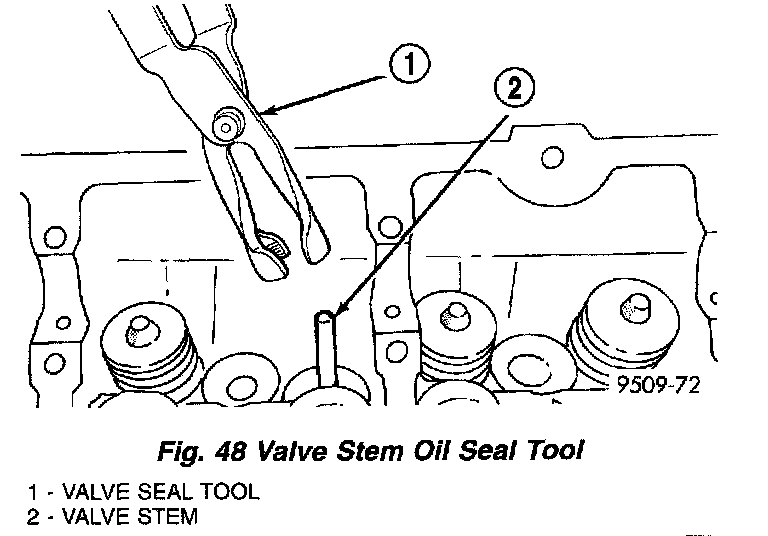 7. Remove valve stem seal(s) by a using valve stem seal tool (Fig. 48).