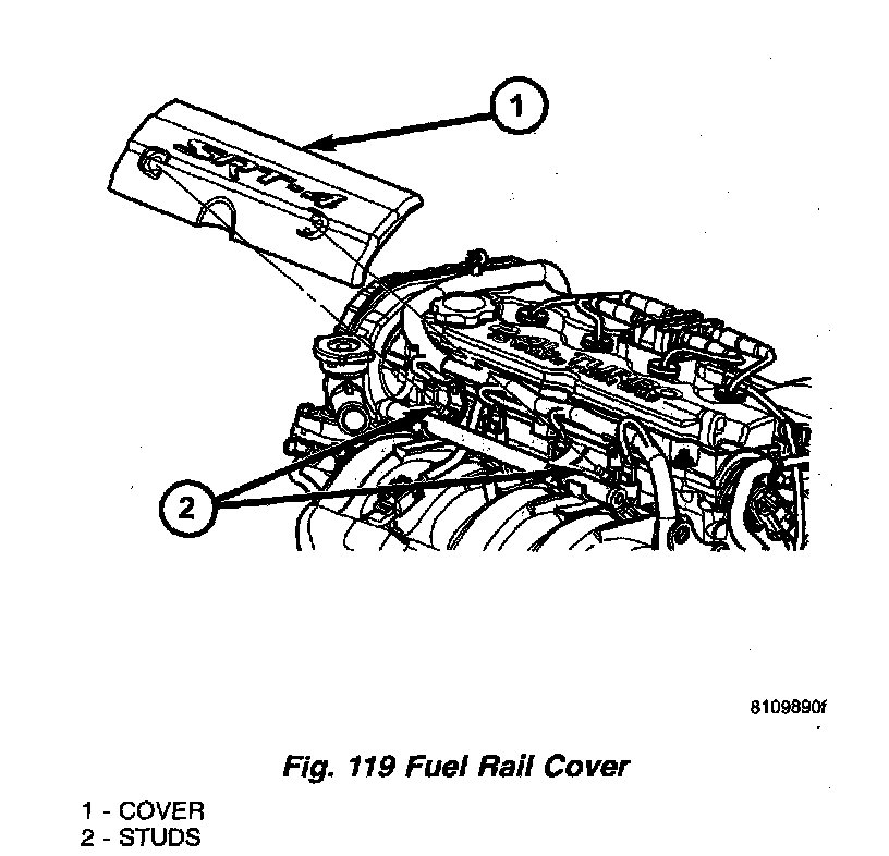 3. Remove fuel rail trim cover by pulling straight off fuel rail studs (Fig. 119).