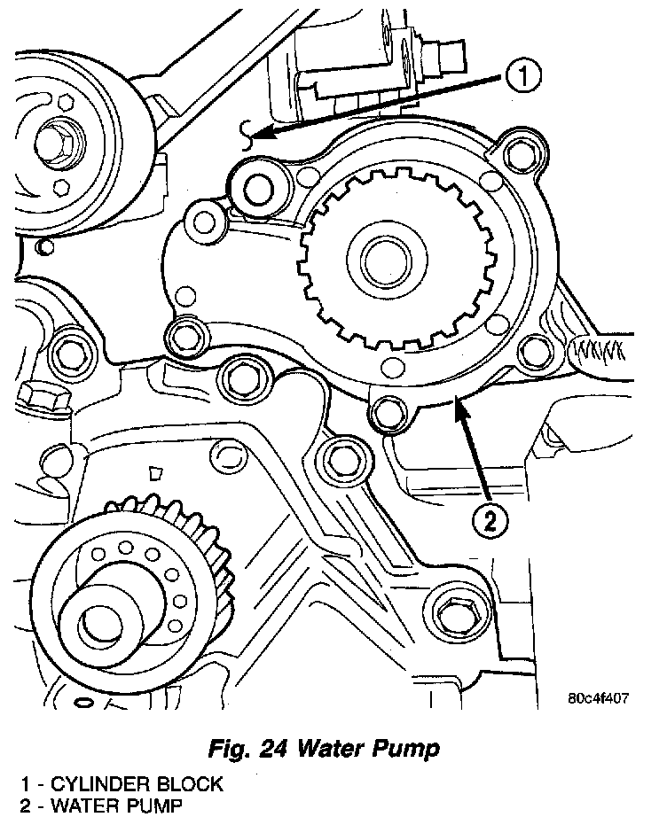 5. Fill cooling system. Pressurize cooling system to 103 kPa (15 psi) with pressure tester and check water pump shaft seal and O-ring for leaks.