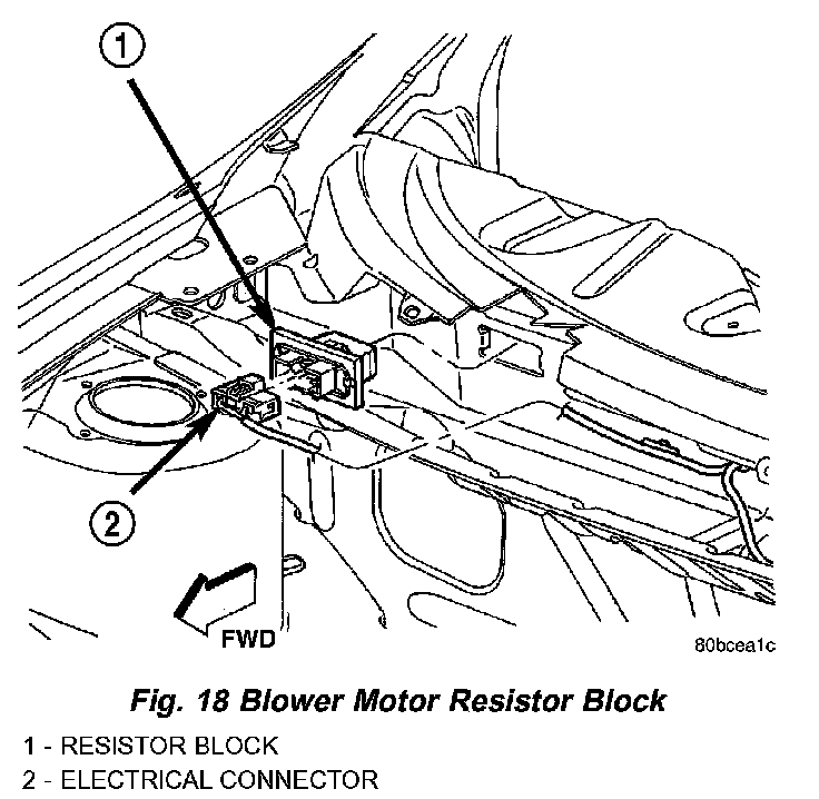 The blower motor resistor is located in the cowl, at the base of the windshield.