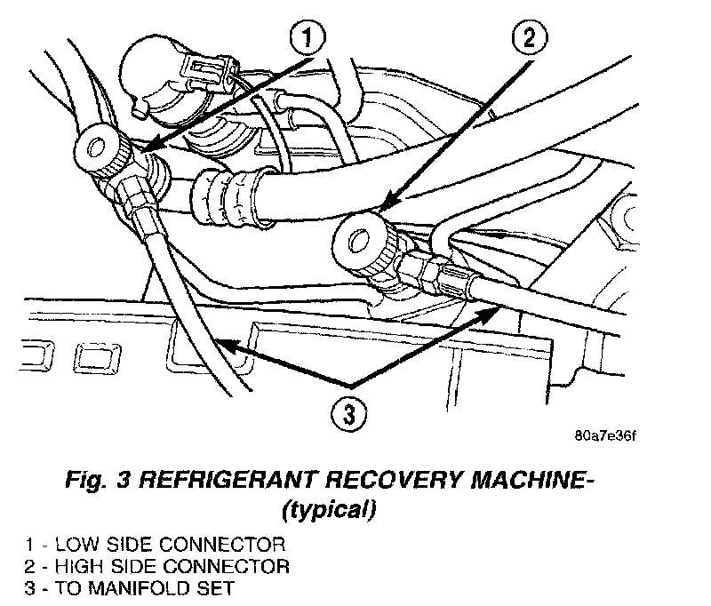 1. Connect a suitable charging station, refrigerant recovery machine or a manifold gauge set with vacuum pump and refrigerant recovery equipment.