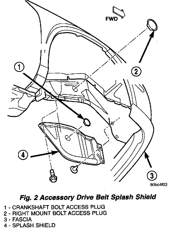 2. Remove belt splash shield (Fig. 2).
