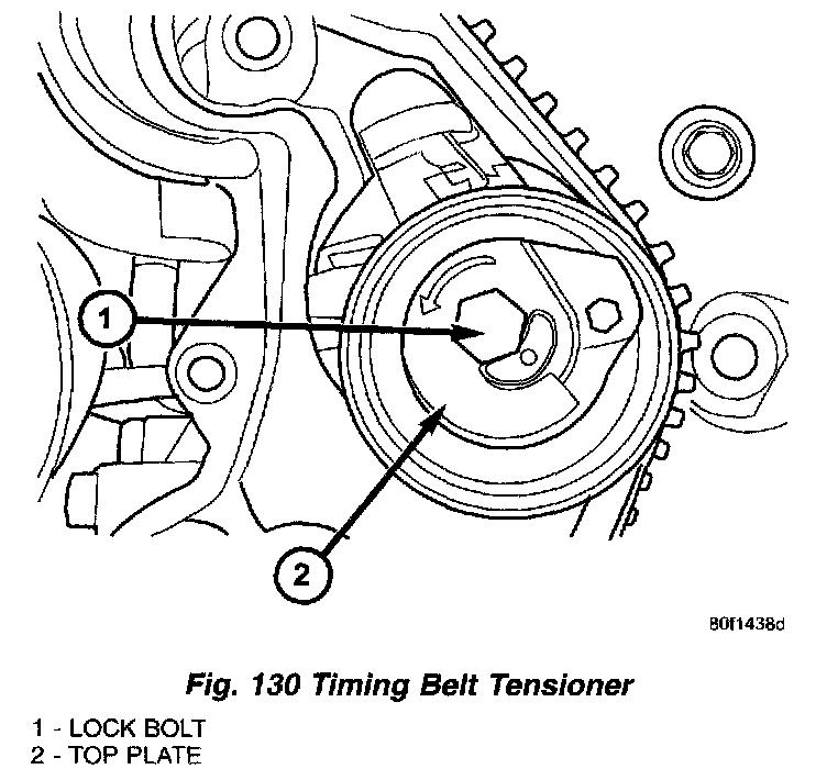 4. Loosen timing belt tensioner lock bolt (Fig. 130).